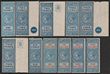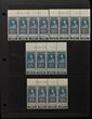 1914-65 collection/accumulation on 30+ hagners. Kangaroos 1st wmk 4d, 5d & 1/-, other wmks to 1/-, KGV to 1/4 inc 1d green no wmk 'secret mark'. 1934 VIC Cent 2d, 3d imprint blks & 1/- imprint pr (gum tone). 1936 2d Cable various plate blks (13) plates 1-4. Various 1930 Commems inc 1934 1/6 Airmail no wmk. 1938 2d NSW Sesqui variety 'man with tail', 9d (2), 1936-49 Definitives ½d to 1/- inc 2d violet blk of 4, medal flaw, various imprint blks, 1938 ½d Kangaroo pr FDC, 1932-49 1/6 Hermes Airmail blk of 32 with perf pip (cat $200+), 1948 Hereford Bull blk of 30, duplicated range 1953-60s Commems in blks of 4-10 inc 2/- (107) inc Coronation, Royal Visit, 1956 Olympics, 2/- QANTAS, 1958 5½d Canberra left marginal blk of 12, 1959-66 Definitives to 5/- Cattle (2 papers). Airmails 10 sets, Flowers 9 sets, Birds 12 sets, 2/3 Commems (106) plus much more. Mainly fresh VF MUH. ACSC cat $4500+. (1100+) |
