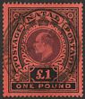 1908-09 KEVII £1 purple & black/red. VF fresh M. Scott 116 cat US$450. SG 171 cat £450. (P) |