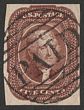 1851-57 Jefferson 5c red-brown, imperf. VFU, 4 margins, barred PAID pmk. Scott 12 cat US$750. SG 14 cat £1100. Nice quality classic. (P) |
