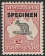 | 1188 Click to enlarge photo | £2 Grey & rose-crimson, opt SPECIMEN, type D. W/C VF fresh MUH. SG 114s cat £4500 for normal. ACSC 57Ax cat $1750. Ex Sandy. (P) | SOLD at A$625 | ||