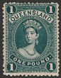 1905-06 QV large Chalon £1 deep green, Lithographed, wmk Crown/Q (SG w2) sideways, perf 12. F-VF fresh MLH. Scott 127 cat US$575. SG 274 cat £550. Scarce mint. 2024 Ceremuga AIEP photo cert. (P) |