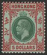 1904-10 KEVII $5 dull green & brown-orange on chalk-surfaced paper, wmk Mult Crown. VF fresh MLH. Scott 127 cat US$325. SG 138b cat £350. (P) |