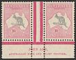 Lettercard: 1913-14 Kangaroo 1d violet-black die 1, view Mt Lofty Ranges (horiz) & die 2 Pineapples (stuck) in brown-black. View sides super fresh UN, reverses with sun-tanned bars. ACSC L15(85) & L16(103) cat $325. (2). |