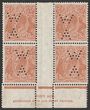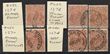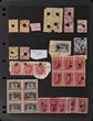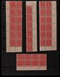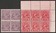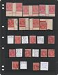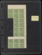 1913-65 collection/accumulation of mainly pre-decimal imprint/plate blks in hagner binder. But also NWPI Kangaroos 2d to 5/- & KGV ½d-4d violet 5th setting inc KGV 2d orange & scarlet perf OS, also hagner of mainly Kangaroos Used on piece inc 2d, 6d & 1/- 1st wmk with scarce pmk English Mail Out 18 JE 13, 5/- 3rd wmk on piece, 1929 1½d Swan plate numbers 1-12 singles, also pr with 're-entry to neck & TR', others inc 1931 Airmail 6d grey-brown imprint strip of 3 & comp set of plate number blks of 4 of 2d scarlet Cable (16 - upper left & right, lower left & right), various duplicated later imprint blks (250+) of 4, diff positions inc 1940 AIF to 3d, 1937-47 Definitives to 1/K, 1945 Gloucester Visit, 1946 Mitchell, 1947 Newcastle etc, duplicated singles inc 1959-66 Definitives to 3/- & 1964 Birds to 3/-, mostly 5 of each & Commems inc 2/- (25) & 2/3 (20+). Many of the imprint blks have potential varieties, these have not been checked. Mostly F-VF MUH/MLH, few F-VFU. ACSC cat $5000+. Rare to find pre-decimal imprint blk quantities. (1000+) |