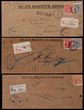 St Nazaire: 1945 LIBERATION opts group with Mercury 40c, Petain 20c, 30c - these 3 opt INVERTED, 1F, 1.20F, 4F & 4.50F tied by 'Batz s Imer 9 5 45' cds, all with s/l 'Taxe Percue, Ilot de St Nazaire, Vive la Liberation' h/s. Also Petain 1.20F Postcard with Taxe Percue h/s inverted & 'Ilot de St Nazaire' s/l cachet. Mayer L1(var), L2(var) & l14E cat €1300+. (8). (P) |