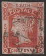 Postcard: 1897 Arms 1d red view Fairy Dell Leura NSW (walking trail) in dark brown, Greetings in pale brown. Superb fresh UN. PSSA PC19a. Extremely rare, possibly unissued as unrecorded U & only several known UN. When last offered at auction in 2013 it realised $1955. (P) |