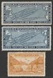 Lettercard: 1911-12 KGV Fullface 1d on greyish/greenish stock max 0.22mm thick, views Blue Lake in green, Viaduct in blue & On the Murray bright rose-red. View sides mostly superb fresh UN, all with varying degree of uneven suntanning. ACSC L10(12, 136A & 94A) cat $600. (3). |