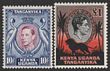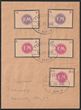 1938 20th Anniversary of King's Accension set 1L-14L, 2 sets one one front & one inside tied by special cds on special booklet given to VIP's for the celebrations, with gold embosed letters & arms on front, and detailed planning text & map inside. Superb fresh. SG 413-17, Mi 345-49. Extremely rare item - only such example we know. Provenance: Collection of Nikolai Petrov Nikolaev - Bulgarian Minister of the Interior. 2023 Ceremuga photo cert. (P) |