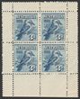 1928 Kookaburra 3d blue M/sheet UR marginal blk of 4 M/sheets. VF fresh MUH. SG MS 106a cat £520 M, should be at least double £1040 = A$2080 MUH. ACSC 133MS cat $1700. (4 M/S) (P) |