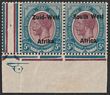 | 8140 Click to enlarge photo | 1923 setting II opt KGV 5/- purple & blue, LL cnr marginal horiz bilingual pr. VF fresh MLH, LL cnr marginal. Scott 13 cat US$175. SG 13 cat £160. Only 2400 prs printed. (P) | AVAILABLE at A$120 | ||