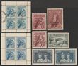 1913-65 collection/accumulation of mainly pre-decimal imprint/plate blks in hagner binder. But also NWPI Kangaroos 2d to 5/- & KGV ½d-4d violet 5th setting inc KGV 2d orange & scarlet perf OS, also hagner of mainly Kangaroos Used on piece inc 2d, 6d & 1/- 1st wmk with scarce pmk English Mail Out 18 JE 13, 5/- 3rd wmk on piece, 1929 1½d Swan plate numbers 1-12 singles, also pr with 're-entry to neck & TR', others inc 1931 Airmail 6d grey-brown imprint strip of 3 & comp set of plate number blks of 4 of 2d scarlet Cable (16 - upper left & right, lower left & right), various duplicated later imprint blks (250+) of 4, diff positions inc 1940 AIF to 3d, 1937-47 Definitives to 1/K, 1945 Gloucester Visit, 1946 Mitchell, 1947 Newcastle etc, duplicated singles inc 1959-66 Definitives to 3/- & 1964 Birds to 3/-, mostly 5 of each & Commems inc 2/- (25) & 2/3 (20+). Many of the imprint blks have potential varieties, these have not been checked. Mostly F-VF MUH/MLH, few F-VFU. ACSC cat $5000+. Rare to find pre-decimal imprint blk quantities. (1000+) |