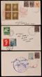 Wrappers: 1938-50s range with 1953 QEII 2½d brown (3) inc uprated for Airmail letter rate (total franking 1/6), 1959 5d blue & 1975 11c/7c uprated. Also 1938 Queen 1d PO & PTPO ($180) & QEII PTPO 3½d orange embossed ($250). Mostly G-VFU, some mixed. ACSC cat $600. (9) |