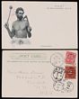 Lettercard: 1918-20 KGV 1½d black on mottled stock, perf 10, view Pineapples (pickers), plus in grey-black on smooth grey stock perf 12½, view Gibberabong Creek. 1st F-VF UN sl suntan bars on text side, 2nd superb fresh UN. ACSC LC41(102B) & 44(51) cat $400. (2) |