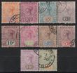 1896-97 QV Tablet ½d to 5/-. VF fresh MLH. Scott 34-45 cat US$192. SG 41-52 cat £237. (12) (P) |