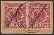 1890 'Swaziland Government Committee' violet h/s 10/- on yellow. Superb F/C on piece, m/s Stamp Cancelled & initials. Bft 21(var) unlisted colour. Extremely rare. (P) |