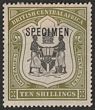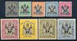 1898-1908 Arms set 2½d - £10 perf SPECIMEN Full set of 10 as per SG as only these values distributed via the UPU. Mostly F-VF fresh M, £10 repaired tear at top. SG 80s-93s cat £900 (normals cat £8380). Rare set. (10) (P) |