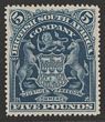 1898-1908 Arms £5 deep blue, perf 14½. Superb fresh UN (ex BSAC archives, which were flooded during WWII bombings). Scott 74 cat US$4000. SG 92 cat £3500. Rare genuine unused high value. 2020 Ceremuga photo cert (P) |