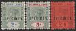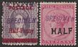 1895 'POSTAGE Half-Penny' opt QV 6d violet & 1895 'HALF' opt QV 1d rose, both h/s SPECIMEN. VF fresh M. SG 114s & 125s cat £125 & undercatalogued (2). (P) |