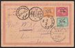 1898 use of SOUDAN opt Egypt 5m red Postcard, uprated 2m green & 3m orange, to Launceston Tasmania, cds inc 'Challal 9 SE 98', 'Assouan 8 E 98', 'Cairo & Suez '11 IX 98', Colombo, & 'Launceston OC 11 98'. Message headed 'Khartoum August 3rd' (other items from same correspondence have Halfa pmks on stamp). H&G 2. SG 3 & 4. Extremely rare usage to Australia. (P) |