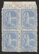 | 3584 Click to enlarge photo | 1927-30 'S.W.A.' opt Native Kraal 4d brown, top marginal bilingual blk of 4, LL stamp 'without stop after A'. VF fresh MLH/MUH, variety pr MUH. Scott 101/101c cat US$109 for M prs. SG 62/62a cat £102 for M prs, should be at least double £192 MUH for this blk. (P) | AVAILABLE at A$100 | ||