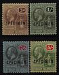 | 3593 Click for more photos | 1927-52 Official opts collection on Scott album pgs. 1927 setting III opt Pictorial vals to 6d plus ½d used, all horiz bilingual prs. 1929 2d inc no stop varieties 1928 & 1929 sets, prs inc 2d no stop variety. 1931 Pictorial set to 6d. 1938 Train 1½d pr. 1945 set to 6d. 1950-52 Pictorial set to 6d prs plus 1d, 1½d, 2d & 6d variety opt transposed. F-VF fresh M/MUH, 1 U. SG cat £1100+ - A$2200+. (72). (P) | AVAILABLE at A$375 | ||