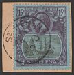 | 3586 Click to enlarge photo | 1927-30 'SWA' opt Ox Wagon 5/- black & green, bilingual horiz pr, right stamp variety 'no stop after 'A'. F-VF fresh MLH. Scott 104c cat US$325. SG 66a cat £250. (P) | AVAILABLE at A$150 | ||
