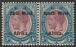 | 3583 Click to enlarge photo | 1927-30 'S.W.A' opt Union Buildings 2d grey & maroon, horiz bilingual pr, perf 14x13½, error opt DOUBLE one INVERTED. VF fresh MLH. Scott 99d cat US$800. SG 60cb cat £750. Rare as only 1 sheet recorded. Exp Holcombe. (P) | AVAILABLE at A$450 | ||