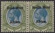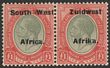 | 3572 Click to enlarge photo | 1927 opt Orange Tree 6d green & orange, horiz bilingual pr with Afrikaans on English stamp & visa versa, variety 'no stop after 'Africa'. VF fresh MLH. Scott 87f cat US$210. SG 47a cat £180. (P) | AVAILABLE at A$100 | ||