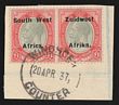 | 3587 Click to enlarge photo | 1927 'Suidwes Afrika' & 'South West Africa' opts, (SG type D1/D2) imperf Proof of opt only, blk of 6 bilingual horiz prs on blue wove paper. VF UN as made, all 4 margins. SG D33(P). Rare Proof multiple. (12) (P) | AVAILABLE at A$120 | ||