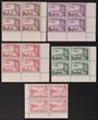 1935-41 John Ash imprints blks of 4 inc 1935 Silver Jubilee 1d & 5d 'accent' flaw, 1938 2d to 1/- 50th Anniversary & 1939-41 Air 2d to 1/6. Mostly F-VF MLH, little mixed condition inc tropicalisation. SG 150-168 cat £490, should be at least double for imprints £980 = A$1960. Scarce group. (72) (P) |