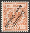 | 2487 Click for more photos | New Guinea: 1897-99 'Deutsch-Neu-Guinea' opt Eagle 25pf orange, error opt INVERTED. F-VF fresh M. Scott 5a cat US$2100, SG 5(var), Mi 5bk cat €2800. Only 1 sheet printed, which was discovered before it was sent to the colony. Exp Freidemann, plus 2007 Jaschke-Lantelme BPP photo cert. (P) | SOLD at A$800 | ||