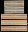 | 3308 Click for more photos | 1916-32 Bicolour Lakatoi ½d to 10/- imprints & Monograms strips of 3 with blks up to 10 inc shades 2d deep brown-purple, 4d light brown & orange, 2/6 both shades inc wmk variety 'grown to right of A' on 1d grey-black & carmine, 2d deep brown & purple (SG 96aw), 4d light brown & orange (SG 99aw) inc Harrison, Mullett & Ash imprints as applicable, Cooke JBC & CA Monograms & finally 1932 Ash printing on 9d & 1/3. Some mixed condition but some tropicalisation. Generally F-VF MLH/MUH. SG 93-105, 127-28 cat £2100 as normal, should be at least double for imprint/Monograms £4200+ = A$8400+. Very rare assembly, very difficult to duplicate. (162) (P) | SOLD at A$2500 | ||
