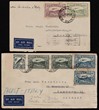 1939 Airmail cover from Rabaul (22 May) to Germany carried on interrupted Imperial Airways flight SW127 which was delayed by mechanical trouble at Basra, franked 1939 Airs 9d & 1/-. Also 1939 (20 Marginal) Kokopo-Germany franked 1939 Airs 3d (2), 5d (2) & 1932-34 5d. SG 182, 216, 218, 220 & 221 cat £100+ as loose stamps & 'from x2' on cover. (2) |