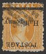 1877-79 'POSTAGE Half-penny' opt QV 1d yellow, error opt INVERTED. VFU, barred oval pmk. Scott 61b cat US$240, SG 91a cat £275. (P) |