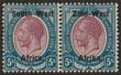 1923 setting II opt KGV 5/- purple & blue, bilingual horiz pr. VF fresh MLH. Scott 13 cat US$175. Scott 13 cat US$160. Only 2400 prs printed. (P) |