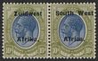 1923 setting I opt KGV ½d green, LL cnr marginal horiz pr, right stamps error 'South Wes for South West'. VF fresh MUH. Scott 1(var). SG 1a cat £120 for M, should be at least double £240 MUH. (P) |