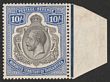 1927-31 KGV 10/- black & deep blue. Superb fresh MUH, right marginal. Scott 43 cat US$110+. SG 106 cat £120+ both for M, should be at least double £240 MUH. (P) |