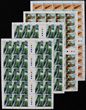 1966-80s decimals with plate numbers & varieties in 4 sheet files comprising mainly half/full sheets of 50/100 inc 1971 Christmas half sheet of 50, 1966 QEII 1c-7c, noted 1c plate 4 blk of 20 1c & 5c sheets, 4c red (19 sheets) inc plate nos 24, 25, 26 & blks of 20 with plate nos 19, 20, 21 & 27 with various upper & lower plate nos, various perf pips etc, 5c blue blks of 50 (7) mainly with various degrees of offset, 6c (5 sheets), 7c misplaced perfs. 50c Dampier left margin plate 2 inverted, blk of 12 cat $375, 1974 10c Christmas plate 6 upright gutter strip cat $100+, 1972 7c Olympic varieties inc 'rowing retouch Munich', retouch trial (3 ea), 'retouch aqua band', very scarce & others these cat $2500+. 1973 Marine Life 1c-3c, Gemstones 6c-9c inc 9c Surch in sheets of 100, 1975 Christmas 15c sheets with diff gum, 1976 Nationhood (types I & II) sheets, 1977 Test Cricket 18c (3) & 45c sheet of 100 with plate nos. Various others inc 1966 75c strip of 8 with horiz perf through design, noted various ACSC varieties throughout. Some sheets with colour bars, many with ACSC varieties, late numbers etc. Face value $640+, ACSC cat $6000+. Unchecked in detail so potential for finds. All appear VF MUH. Fresh VF MUH. (8500+) |