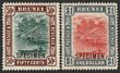 1897 '2½' red opt Sultan 4a red & myrtle-green, both opt SG type 3 & 5. VFM. Scott 53 & 55 cat US$250. SG 175 & 177 cat £240. (2) (P) |