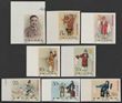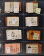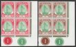 1913-65 collection/accumulation of mainly pre-decimal imprint/plate blks in hagner binder. But also NWPI Kangaroos 2d to 5/- & KGV ½d-4d violet 5th setting inc KGV 2d orange & scarlet perf OS, also hagner of mainly Kangaroos Used on piece inc 2d, 6d & 1/- 1st wmk with scarce pmk English Mail Out 18 JE 13, 5/- 3rd wmk on piece, 1929 1½d Swan plate numbers 1-12 singles, also pr with 're-entry to neck & TR', others inc 1931 Airmail 6d grey-brown imprint strip of 3 & comp set of plate number blks of 4 of 2d scarlet Cable (16 - upper left & right, lower left & right), various duplicated later imprint blks (250+) of 4, diff positions inc 1940 AIF to 3d, 1937-47 Definitives to 1/K, 1945 Gloucester Visit, 1946 Mitchell, 1947 Newcastle etc, duplicated singles inc 1959-66 Definitives to 3/- & 1964 Birds to 3/-, mostly 5 of each & Commems inc 2/- (25) & 2/3 (20+). Many of the imprint blks have potential varieties, these have not been checked. Mostly F-VF MUH/MLH, few F-VFU. ACSC cat $5000+. Rare to find pre-decimal imprint blk quantities. (1000+) |