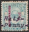 1895-96 '2½' red opt QV 1a plum, opt SG type 3. VF fresh MLH. Scott 21 cat US$275. SG 32 cat £250. (P) |