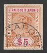| 7964 Click to enlarge photo | 1902 KEVII £5 mauve & black, opt SPECIMEN. F-VF M, tiny thin. Scott 98s cat US$250 (normal cat US$5500). SG 144s cat £275 (normal cat £6500). (P) | AVAILABLE at A$75 | ||