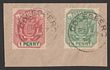 | 8016 Click to enlarge photo | 1899-1900 Boer invasion of Cape Colony - Postmark: CDS 'Colesberg FE 27 19' on Transvaal Arms ½d on 1/-, & Pictorial 1d with '19' meant to represent '1900' -year error confirmed by Pretoria 1900 cds on same piece, apparently the new century postmarkers yet to arrive. All on single piece. SG 213 & 215c. (2). (P) | AVAILABLE at A$50 | ||