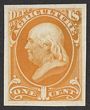 | 8547 Click to enlarge photo | 1873 Official Justice 3c brown trial colour proof on thin card, imperf, instead of purple issued colour, for Atlanta Exhibition. VF UN as made, 4 margins. SG O206(p) cat £325 as normal. US$027TC4c cat US$37 (normal cat US$300). | AVAILABLE at A$30 | ||