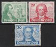 | 2519 Click to enlarge photo | 1949 Goethe set 10pf-30pf. VF fresh MUH. SG B61-63 cat £400. Mi 61-63 cat €320. (3) (P) | SOLD at A$80 | ||