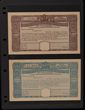 | 281 Click for more photos | Burma 1945 War Savings 'Post Office 5-Year Cash Certificates' all diff, inc watermark error 'GOVT OF INDIA & stars' on 10R series A1, 20R series H1 & 100R series K1, then all correct wmk 'GOVT OF BURMA & elephant' 10R series A1, 20R series B1, 20R series H1 with 'Joint certificate Class A' imprint at top, 100R series K1 with 'Class A' imprint, 500R series E1, 500R series L1 with 'Class A' imprint, & 1000R series F1. All large banknote size format, with British Burma coat of arms at top middle. Nice UNC/aUNC. Lesser selection sold for an average of £36+ each at a London auction in 2010, so would make these £360+. Very scarce group. (10) | AVAILABLE at A$80 | ||