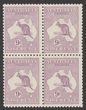 | 977 Click for more photos | 1930 Sturt 1½d red Plate Num 1-8 set blk of 4. Stamps fresh MUH, margins MLH. SG 117(var). ACSC 139 z-zg cat $320. (32). | AVAILABLE at A$70 | ||