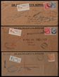 | 3653 Click for more photos | 1926-62 cachet covers with type III in blue-violet to England b/s 'Port Elizabeth 3 MAY 26'. Type Variety in blue to GB taxed & with ½d Postage Due strip of 3 tied 'Axminster 15 SP 36' cds. Type VI to South Africa with 1d Due tied 1938 cds. Type VIII (4) inc 1939 to Norway via London, 1948 used to tie South Africa Royal Visit set in prs by air to London - reverse dated 1948 & 2 more with 1 tying South Africa ½d pr, taxed with Due 1d, plus KGV 1½d, both these with Capetown Kaapstad 15 MAR 48 Paquebot cds. 1950 type X oval stampless with Due h/s (2 diff) to Canada with 4c Due pr pen cancelled. Finally type XI franked GB QEII 3d with cachet at LL & 'Ships Office HMS Protector 20 MAR 1962' h/s. SG cat £715+, plus premium for Postage Due usages etc. (9) (P) | AVAILABLE at A$275 | ||