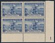 | 1075 Click for more photos | 1936 Cable set 2d & 3d imprint blks of 4 plus 2d plate numbers set of 16 from all 4 sheet positions inc Plate 1 LR cnr variety 'coloured flaw left of headland retouched' (Pos R40) & Plate 4 LL cnr 'weak entry to top right cnr' (Pos L37). 3d blue Plate 1 set of 4 from all four sheet positions inc LR cnr with variety 'weak entry under PO of Postage at left' (Pos R39). Mostly F-VF MUH. SG 159(var). SG 159, ACSC cat $1455. (22 blks of 4) | AVAILABLE at A$275 | ||