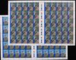 | 739 Click for more photos | 3d Blue varieties inc single wmk blk of 4 with 3 flaws (1L18, ACSC 104Bd), 2 blk of 4 (diff shades) with 'spot over E' (3/4R11, ACSC 105E(3,4)o, blk of 6 with 'retouch SW cnr' (3/4R60, ACSC 104E(3,4r), superb type A MUH marginal single with inverted wmk, Small Multi perf 13½x12½ John Ash imprint blk of 4, 3 blks have type B (4) varieties, so there are also 4 type A-B prs. Mainly F-VF MLH/MUH. SG 79(var). ACSC cat $3900+. Ex Sandy. (27) | AVAILABLE at A$500 | ||